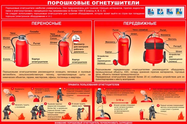 Огнетушители порошковые (ОП) - предназначены для тушения загораний твердых веществ (класс пожара А), жидких веществ (класс пожара В), газообразных веществ (класс пожара С), а также тушения электрооборудования под напряжением до 1000 В. Порошковыми огнетушителями оборудуют автомобили, гаражи, склады, сельхозтехнику, офисы и банки, промышленные объекты, поликлиники, школы, частные дома.